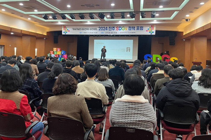 진주시지속가능발전협의회(회장 민현주)는 27일 진주시청 2층 시민홀에서 시민 및 공무원 200여 명이 참석한 가운데 ‘2024 진주 SDGs(지속가능발전목표) 정책포럼’을 개최했다.