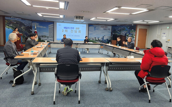 진주시는 27일 시청 문화강좌실에서 ‘배달의 진주’ 대금 정산지연에 따른 대응 방안 논의를 위한 가맹점 간담회를 개최했다.