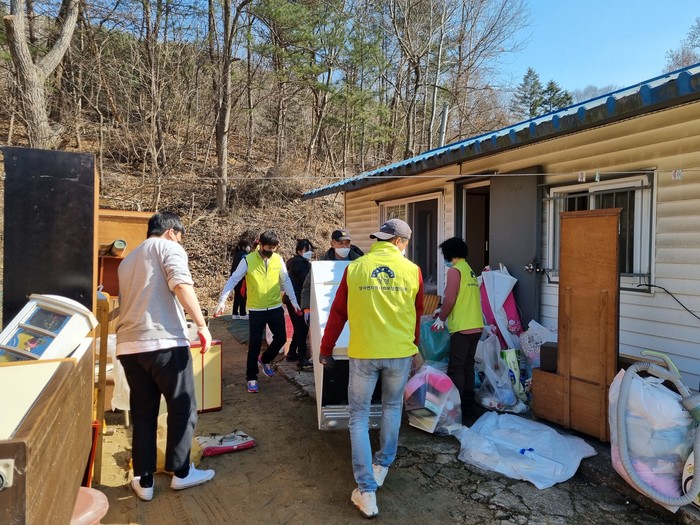 경기 양평군 양서면지역사회보장협의체는 지난 3일 건강이상으로 병원 장기입원 및 이사로 곤란한 상황에 처한 ‘1대 1 멘토링사업’ 대상 노인가구에 2022년 제1차 주거환경개선사업을 실시했다. 사진은 이날 봉사자들이 집안 쓰레기를 분리수거하고 있는 모습.(사진제공=양평군청)