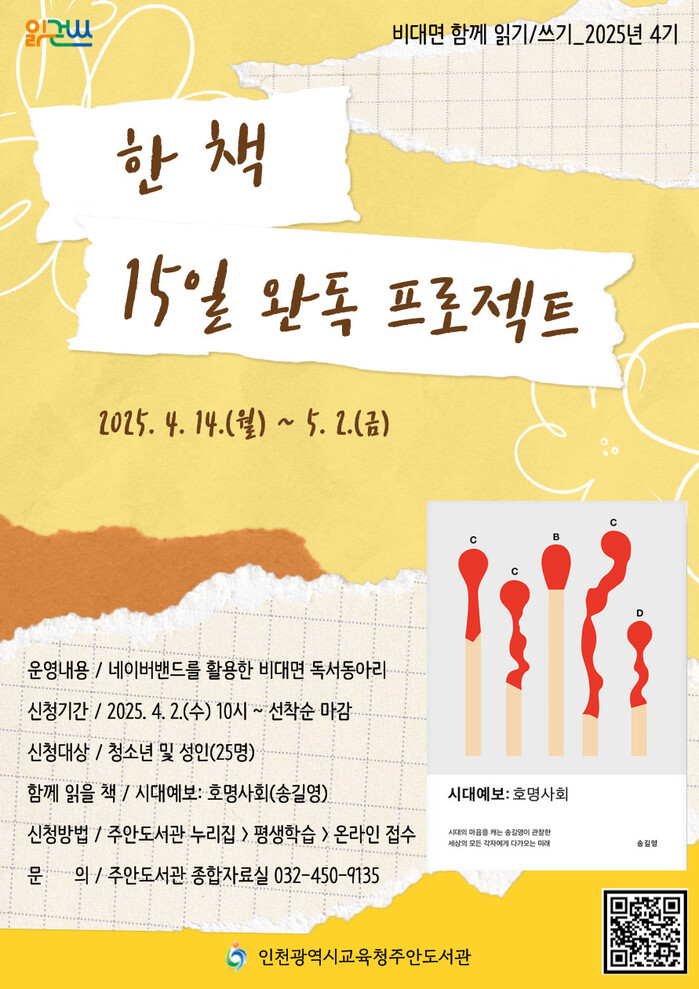 신청은 4월 2일 오전 10시부터 주안도서관 누리집에서 가능하며, 자세한 사항은 주안도서관 홈페이지 또는 종합자료실로 문의하면 된다.