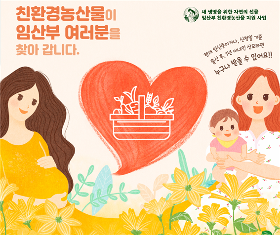 희망자는 오는 19일부터 ‘임산부친환경농산물쇼핑몰에서 온라인 신청이 가능하며, 온라인 신청이 어려운 부득이한 경우 신청서와 주민등록등본, 임신·출산을 확인할 수 있는 서류(임신확인서, 출생증명서, 산모수첩 등)를 지참해 농업기술센터 친환경농업담당으로 방문하여 신청하면 된다.