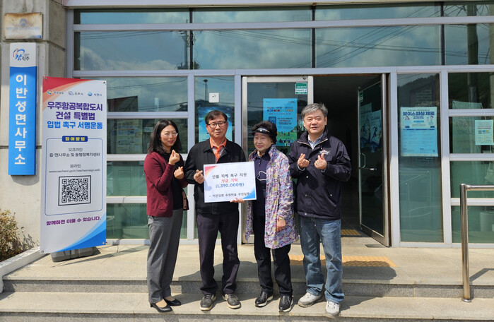 김우길 수성마을 이장은 “예상치 못한 산불로 큰 피해를 입으신 산청군 주민들께 깊은 위로의 말씀을 드린다”며 “이반성면 수성마을 주민들의 작은 정성이지만 피해를 극복하고 하루빨리 일상으로 돌아가시는 데 조금이나마 도움이 되길 바란다”고 따뜻한 마음을 전했다.