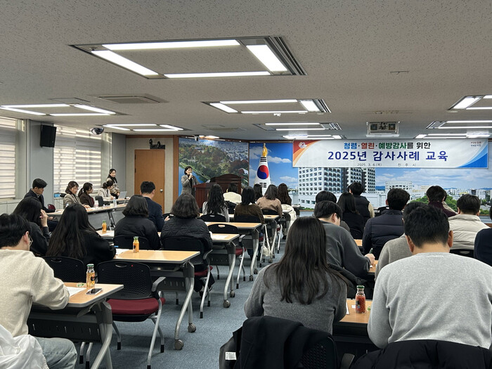 이날 2025년 청렴도 향상 종합대책 안내를 시작으로 재정·계약, 일반행정, 공사 분야 교육으로 진행됐으며, 사전컨설팅 감사 및 적극행정 면책제도에 대한 설명으로 마무리됐다.