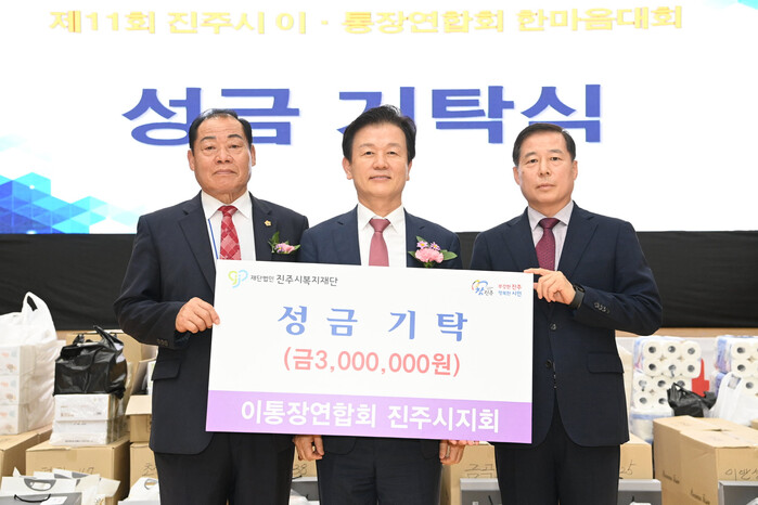 또한 이날 진주시 이·통장연합회는 관내 전 읍면동 이.통장들의 뜻을 모아 어려운 이웃을 돕기 위한 성금 300만 원을 진주시복지재단에 기탁했다.