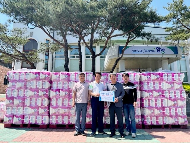 마천면은 이날 총동문회로부터 기탁받은 화장지를 면내 각 가정에 고루 전달할 계획이다.