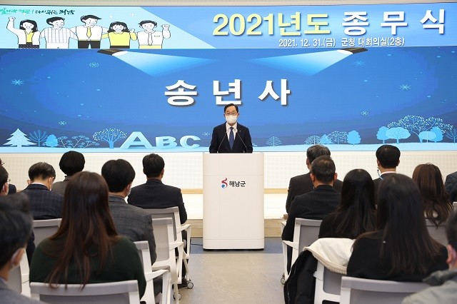 명현관 군수는 송년사를 통해 "코로나19의 위기 속에서도 해남군은 역대 최고의 군정 성과를 거두며 민선7기 군민들께 드렸던 약속을 실현하는 한해를 보냈다”며 “군민과 공직자가 해남발전을 위해 한마음으로 함께 했기에 가능한 결과로 어려운 시기 군정에 따뜻한 성원을 보내주신 군민들께 존경과 감사를 드린다.”고 전했다.