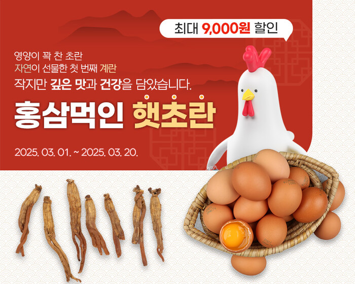 이번 할인 행사에서는 홍삼을 먹인 신선한 햇 초란을 최대 9000원까지 할인된 가격으로 제공하여 고객들의 큰 호응이 기대된다. 한정된 수량으로 진행되는 행사인 만큼 조기 품절될 수 있으니 구매를 원한다면 서두르는 것이 좋다.