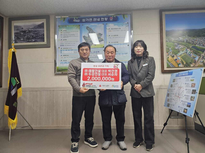 서문병관 삼가면장은 “경기가 좋지 않은데도 꾸준히 어려운 이웃들을 위해 나눔을 실천해 주셔서 진심으로 감사드리며 전달받은 위문금은 소중하고 의미있게 사용하여 어려움을 겪고 있는 이웃들에게 큰 위로가 되도록 하겠다”고 감사의 마음을 전했다.
