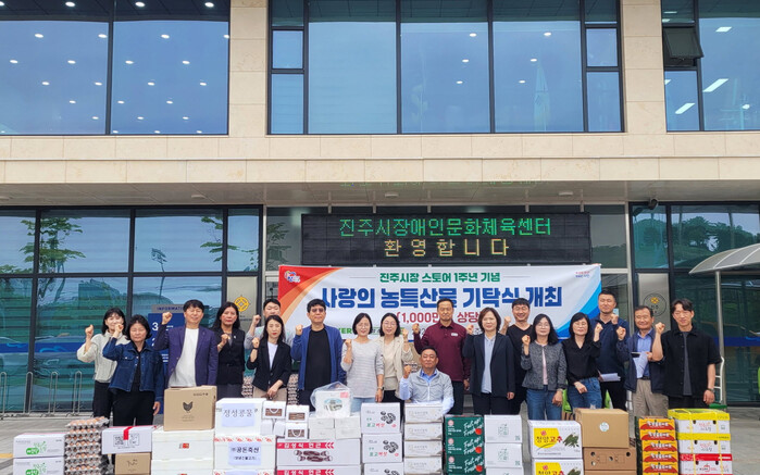 진주시가 운영하는 쇼핑몰‘진주시장스토어’는 개장 1주년 맞아 진주시 장애인체육회에 지역 농산물을 기부하며 의미 있는 나눔을 실천했다.