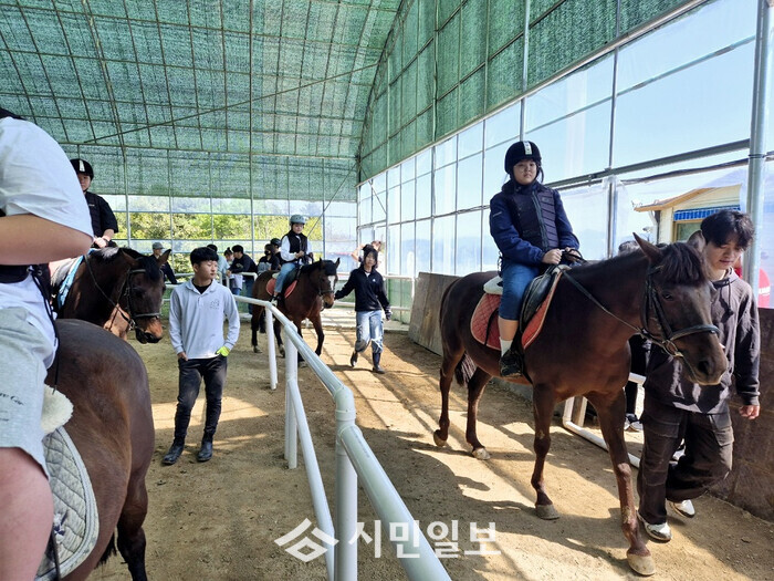 | ▲ 승마 교육에 참여한 학생들 / 해남교육지원청 제공 |