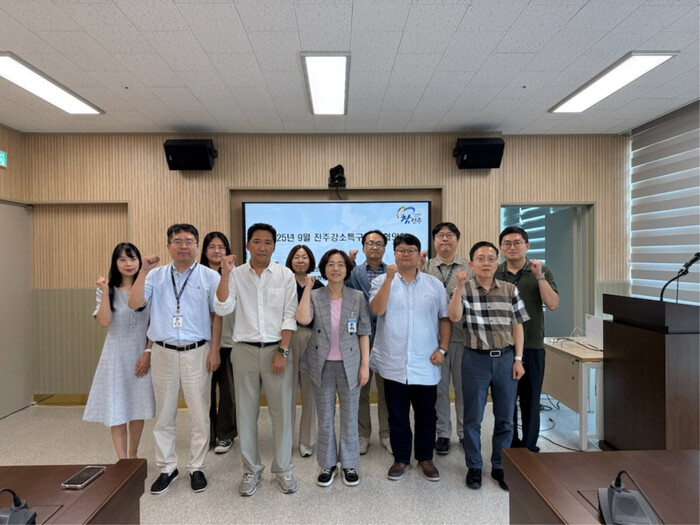 진주시는 16일 경남진주혁신도시 복합혁신센터에서 진주시와 경남진주강소특구지원센터, 한국산업기술시험원 관계자 등 12명이 참석한 가운데 2025년 9월 진주강소특구 실무협의회를 개최했다고 밝혔다.