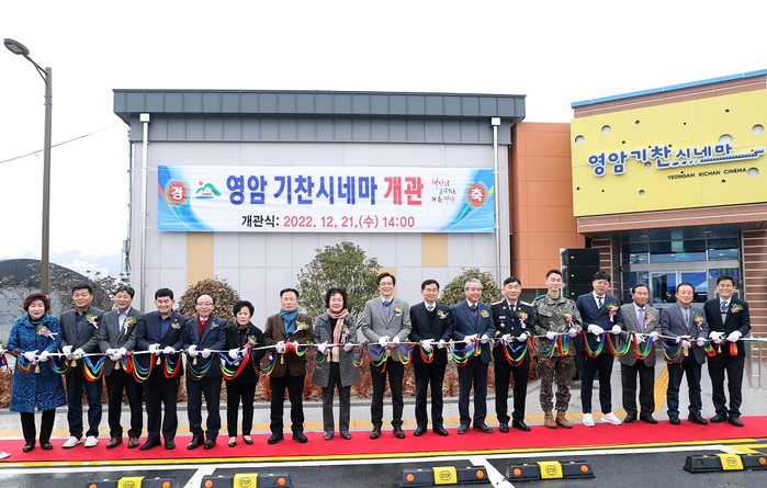 21일 개관한 영암군 작은 영화관 ‘영암기찬시네마’는 영암군이 총26억 3천만 원(문화체육관광부, 전남도 6억5천만 원)을 투입해 영암읍사무소 앞에 규모 지상 1층 연면적 1,089㎡, 건축면적 490.46㎡의 규모로 총 93석 2개의 상영관(1관 58석, 2관 35석)으로, 제1관은 2D 및 3D 입체영화 등을 상영할 수 있는 최첨단 시설을 구축해 준공했다.