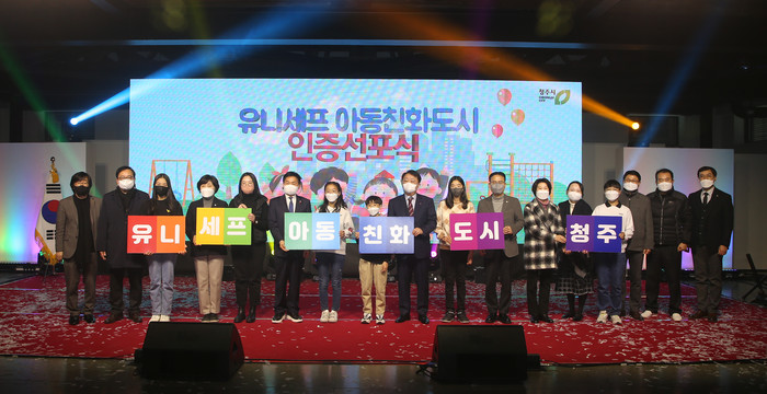 청주시가 지난 5일 동부창고 6동에서 유니세프 아동친화도시 인증 선포식을 개최했다.