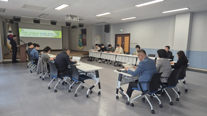 진주시는 지난 25일 한국국토정보공사(LX)진주지사와 함께 한국국토정보공사 진주지사 대회의실에서 토지행정 업무의 효율성과 전문성 제고를 위한 실무 간담회를 개최했다.
