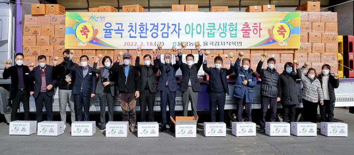 합천군(군수 문준희)의 율곡면 율진감자작목반(대표 문병기)은 2022년산 무농약 친환경감자 100톤을 아이쿱 생협과 2월 11일 공급계약을 맺고, 18일에 12톤을 첫 출하 했다.