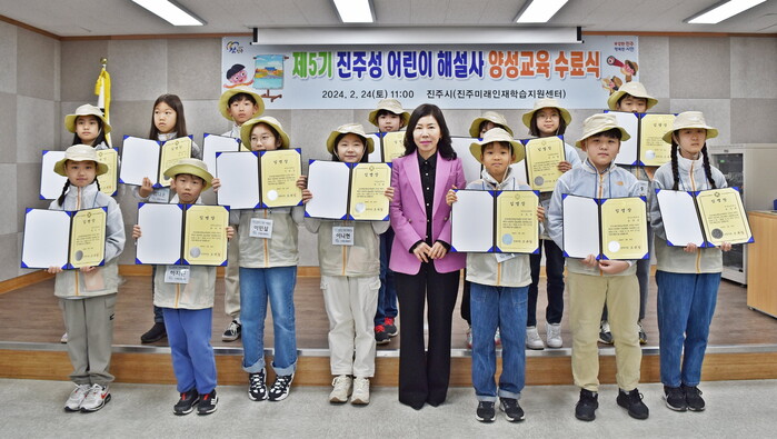진주시는 지난 24일 진주미래인재학습지원센터(이하 미래인재센터)에서 ‘제5기 진주성 어린이해설사 양성교육 수료식’을 가졌다.