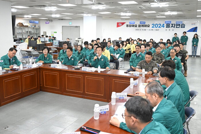 진주시는 19일 시청 지하 1층에 마련된 을지연습장에서 ‘2024년 을지연습’의 시작을 알리는 최초상황보고회를 개최했다.