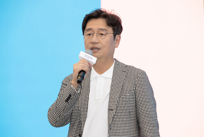 | ▲ '삼성 강남' 미디어 브리핑에서 삼성전자 한국총괄 정호진 부사장이 환영사를 하고 있다.(사진=삼성전자 제공) |