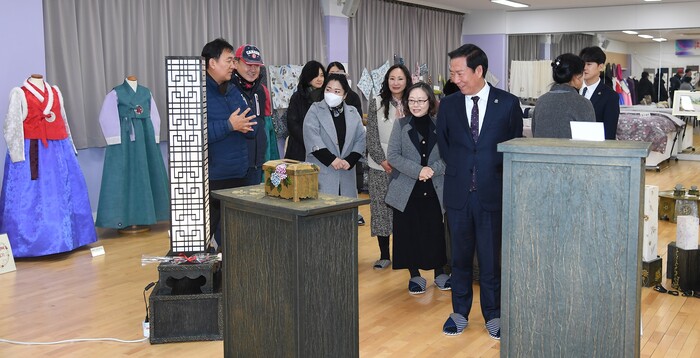 종합사회복지관 2층 사회체육실에는 서예Ⅰ·Ⅱ·Ⅲ, 문인화, 홈패션, 한지공예, 개량한복 만들기, 수채화 등 8개 강좌 수강생이 참여한 총 90점의 작품이 전시됐다.