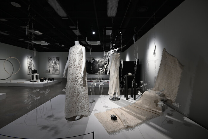 ‘실크아트존’은 이진희 작가의 특별전 '오방 – The Woven Cosmos'가 함께 소개되고 있다. 이 전시는 실크의 물성과 오방색의 상징을 바탕으로 생명의 순환과 존재의 리듬을 시각적으로 풀어낸 작품들로 구성됐으며, 민화적 이미지와 실크 의상, 영상, 조각, 회화 작업을 결합해 전통과 현대, 물성과 영성이 공존하는 공간을 구현했다. 이를 통해 실크를 ‘의복 소재’를 넘어 하나의 예술적 매체로 확장해 보여주고 있다.
