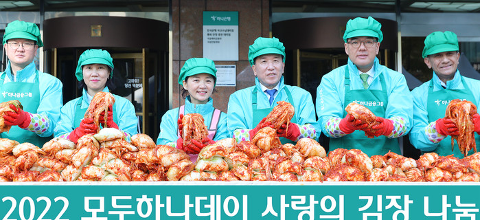 [시민일보 = 여영준 기자] 하나금융그룹은 11일 하나금융그룹 명동사옥에서 '2022 모두하나데이'의 시작을 알리는 '선포식'과 '사랑의 김장나눔' 행사를 개최했다고 밝혔다.
