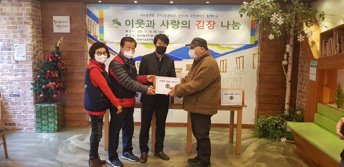 신사2동 주민센터 2층 비단뜨락에서 열린 이번 행사는 연말을 앞두고 어려운 이웃과 더불어 따뜻한 겨울을 보내기 위해 마련됐다. 한국자유총연맹은평구지회에서 신사2동에 거주하는 홀몸어르신에게 개별 포장해 김장김치 10kg을 10가구에 전달했다.