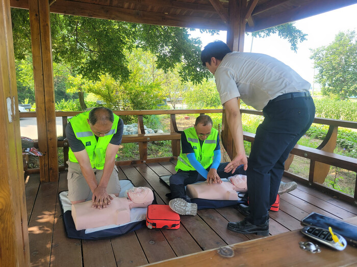 이번 교육은 진주소방서와 협력하여 진행됐으며, 수곡면의 주요 하천 등 사고 위험이 높은 지역을 중심으로 물놀이 안전수칙 안내, 구명조끼 착용 지도, 구조장비 시연, 심폐소생술 실습 등 실질적인 안전교육이 이뤄졌다.