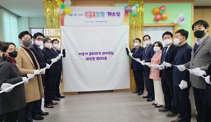 청주시 복대2동 행정복지센터가 지난 18일 한범덕 청주시장을 비롯한 관계자 30명이 참석한 가운데 복지사각지대를 위한 정기후원 사업인 ‘福2팡팡’ 개소식을 가졌다.