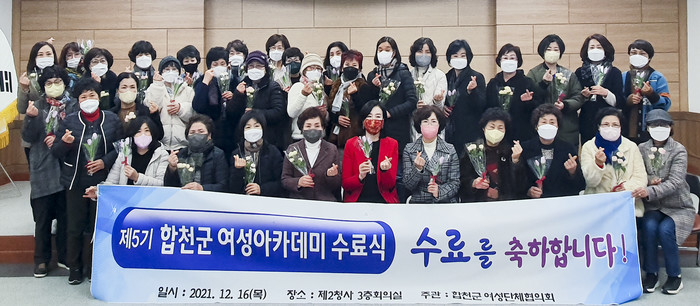 [합천=이영수 기자] 경남 합천군여성단체협의회에서는 지난 16일 합천군청 제2청사 대회의실에서 제5기 합천군 여성아카데미 수료식을 가졌다.