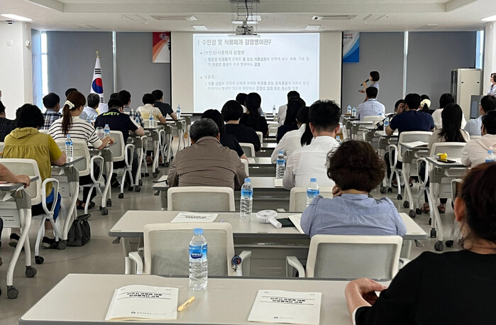 진주시보건소는 4일 지식산업센터 대회의실에서 ‘진주시 감염병 대응 민·관협력단’을 대상으로 ‘수인성·식품 매개 감염병 예방 교육’을 실시했다.