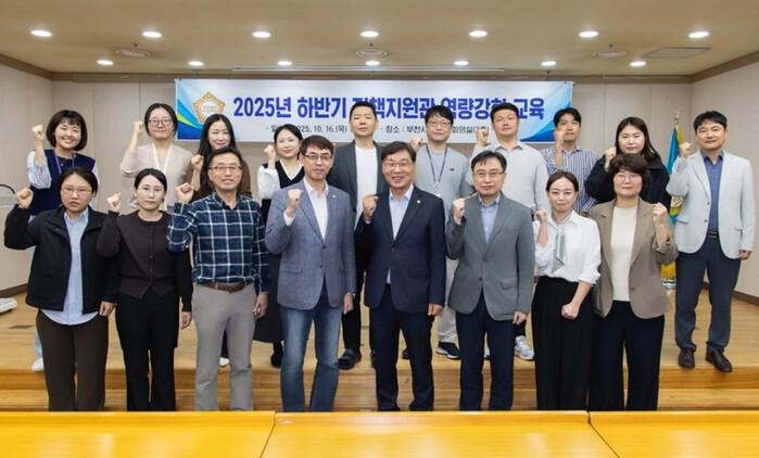 | 부천시의회 정책지원관 역량 강화 교육 참가자들이 파이팅을 외치고 있다. (사진=부천시의회) |