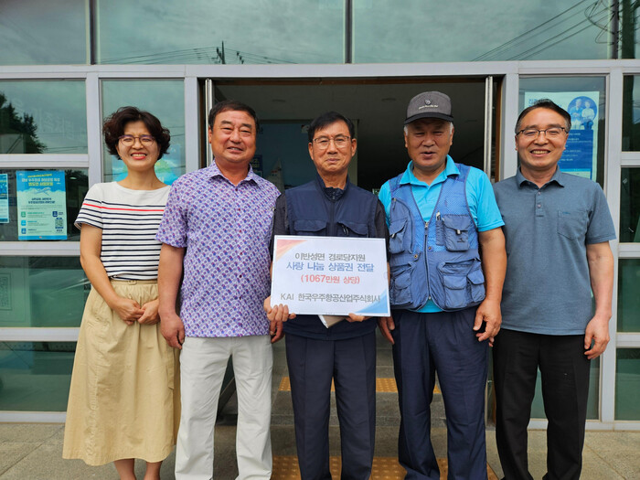 이장협의회 김우길 회장은 “KAI 직원분들의 따뜻한 마음이 이반성면 경로당에 큰 힘이 될 것”이라며 “기탁해주신 상품권으로 어르신들이 더욱 쾌적하고 시원한 여름을 보내실 수 있도록 잘 사용하겠다”고 감사 인사를 전했다.