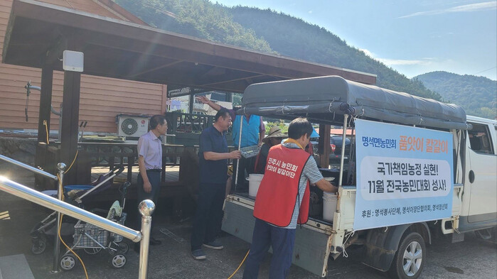 한편, 명석면 농민회는 농업인과 지역사회의 상생발전을 위해 나눔 쌀 모내기 행사, 품앗이 칼갈이 행사 등 다양한 활동을 통해 이웃사랑을 몸소 실천해오고 있다.