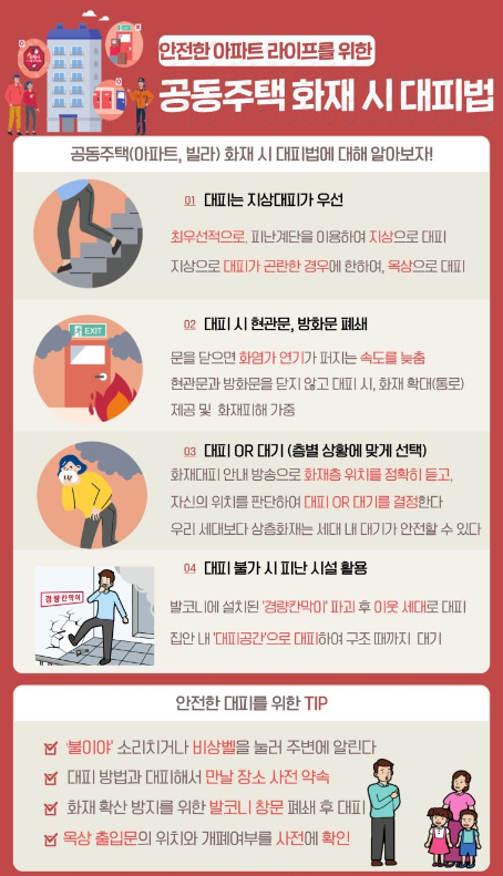 주요 내용은 ▲공동주택 관계자 안전교육 ▲비상구 피난안전 픽토그램 배부·설치 ▲아파트 피난안전 홍보 책자 배부 등이다.