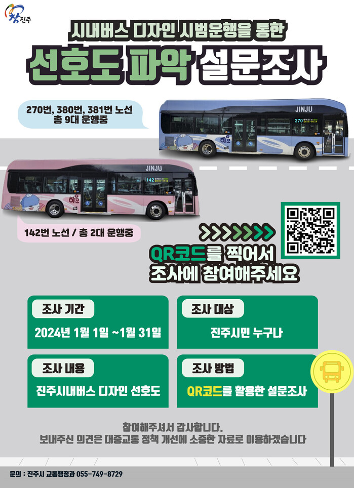 시민 의견은 진주시 홈페이지 및 시내버스 차량 등에 부착된 QR코드를 스캔하여 온라인으로 편리하게 제출할 수 있다.
