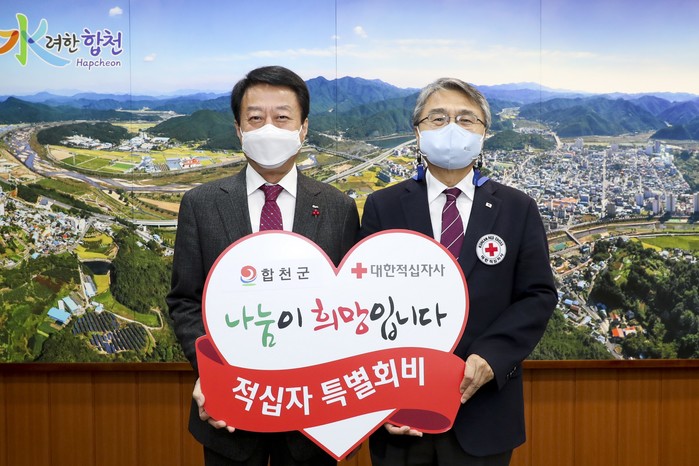 문준희 군수는 “코로나19로 모두가 어려운 상황 속에서 이웃에게 온정을 나누기 위해 묵묵히 헌신하는 대한적십자사 관계자와 합천지구협의회 회원들의 노고에 감사드린다”며 “이번 특별회비 전달이 모금운동을 독려하는 작은 계기가 되길 바란다”고 말했다.