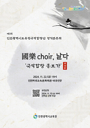 [인천=김형만 기자] ] 인천시교육청 국악합창단이 11월 22일 인천학생교육문화회관 대공연장에서 제3회 정기연주회를 개최한다.