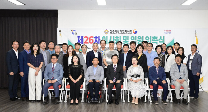 진주시장애인체육회(회장 조규일)는 29일 진주시장애인문화체육센터에서 제4기 임원 위촉식 및 제26차 이사회를 개최했다.
