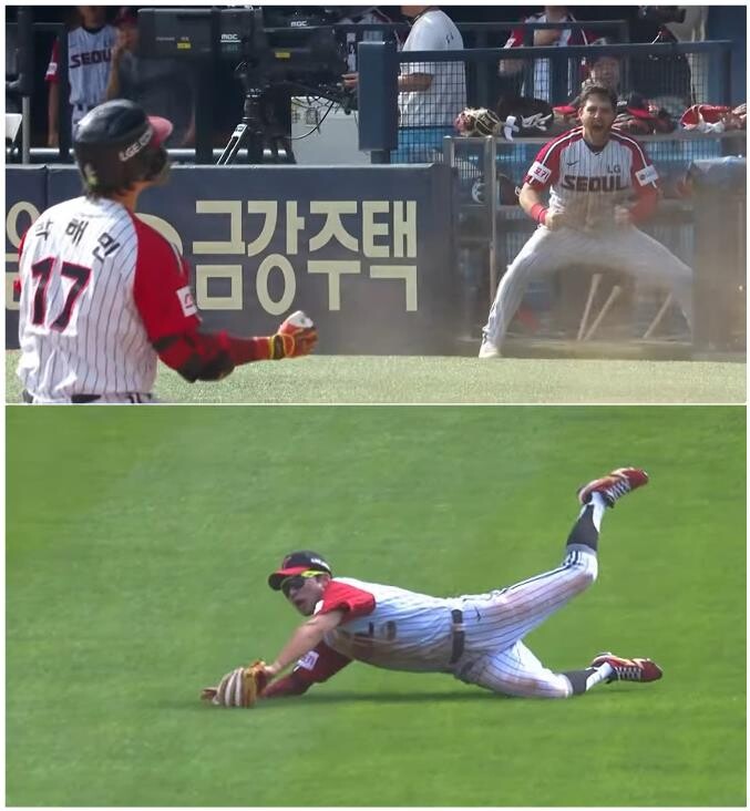 이와 관련해 온라인 커뮤니티에 올라온 "발로 만든 홈런 vs 믿고 보는 수비"이란 제목의 게시물이 시선을 사로잡았다. 해당 게시물은 박해민의 이날 경기 명장면 관련 방송 캡쳐 이미지로 주목 받았다.