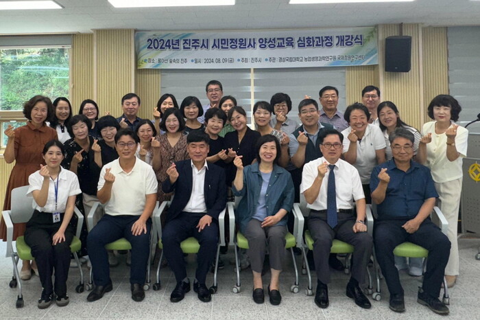 진주시는 9일 월아산 숲속의 진주 방문자센터 2층 정원교육실에서 ‘제3기 진주시민정원사 양성교육 심화과정 개강식’을 개최했다.
