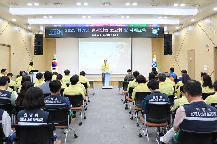 이날 준비보고회에는 함양소방서 현장대응단장, 함양경찰서 공공안녕정보외사계장 그리고, 제8962부대 3대대 통합방위작전장교, 군청 전 부서장, 을지연습 근무자 등 민·관·군·경, 유관기관 근무자 150여명 참석한 가운데 준비사항을 최종적으로 확인·점검하는 자리로 마련됐다.