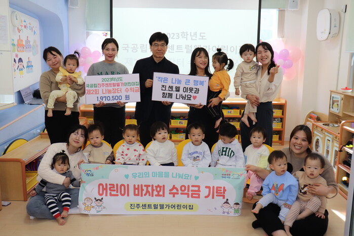 가호동에 소재한 진주센트럴웰가어린이집(원장 김경희)은 30일 나눔장터 수익금 200여만 원을 진주시복지재단(이사장 이성갑)에 기부했다.
