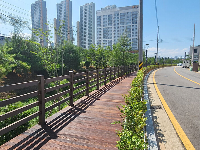 공사 위치는 가좌동 2111번지 인근으로, 그동안 어사천을 따라 이어지던 산책로 보행 동선이 끊겨 있어 주민들의 이동과 산책에 불편을 초래해 왔으며, 끊겨 있던 구간은 차량과 보행자 이용이 혼용되어 안전사고 위험도 꾸준히 제기돼 왔다.