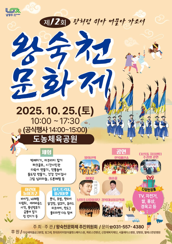 한편, 왕숙천의 아름다운 자연을 배경으로 펼쳐지는 이번 문화제는, 일상 속 쉼표가 필요한 시민들에게 ‘왕처럼 쉬고 머무는 여유로운 하루’를 선사하며, 지역의 전통과 문화를 함께 즐기는 뜻깊은 시간이 될 것으로 기대된다.