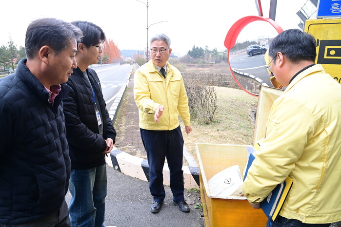 이날 도로설해 대책에 따라 결빙 우려지역 도로변의 제설함, 모래주머니 비치 상태 등을 중점적으로 점검했다.