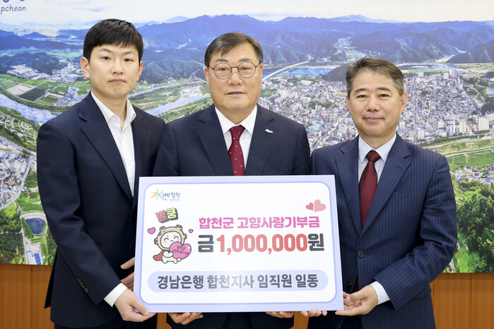김윤철 합천군수는 “한마음으로 고향사랑기부제에 동참해주신 BNK경남은행 임직원분께 깊은 감사드린다”며 “기부금은 합천 발전을 위해 소중하게 사용하겠다”고 전했다.