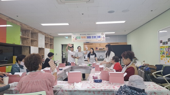 이번 프로그램은 뇌병변 및 지체장애인을 대상으로 매주 금요일마다 총 4회차로 진행되며, 오감 자극 활동인 ▲비누 만들기 ▲유부초밥 만들기 ▲바디워시 만들기 ▲샌드위치 만들기 순서로 진행된다.