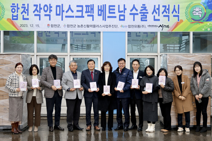 합천군(군수 김윤철)은 15일 영농조합법인 사계(대표 유장민)가 개발한 마스크팩 ‘오늘이’의 베트남 첫 수출을 기념하는 선적식을 합천유통에서 개최하고 본격적인 해외시장 진출의 포문을 열었다.