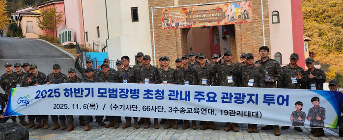 이번 투어에는 수도기계화보병사단 68명, 제66보병사단 30명, 3수송연대 14명, 제19관리대대 8명 등 총 120명의 장병이 참여했다. 이들은 가평읍 ‘카페 골든트리’에서 열린 버스킹 공연을 시작으로, 가평 레일바이크 체험과 청평면 쁘띠프랑스·이탈리아마을 관람 등 가평의 대표 관광지를 둘러보며 즐거운 하루를 보냈다.