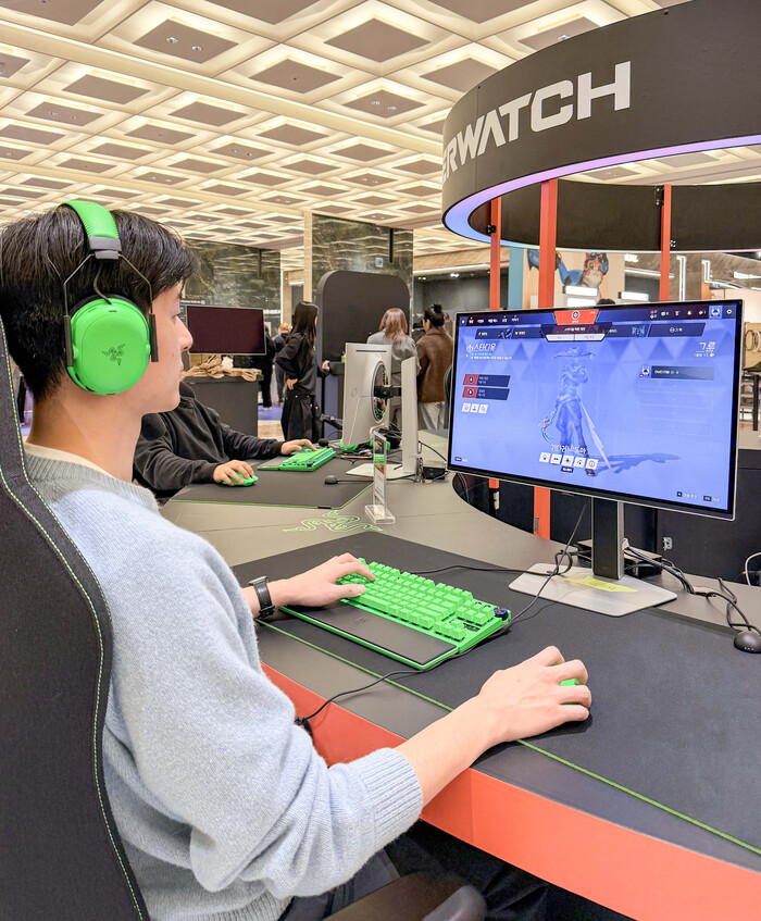 | ▲ 13일 오전, 경기도 성남시 분당구에 위치한 현대백화점 판교점 4층 ‘오버워치 뉴 히어로즈’ 팝업스토어에서 고객들이 신규 캐릭터가 등장하는 게임을 체험해보고 있다.(사진=현대백화점 제공) |